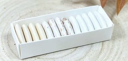 De suikerbonen passen mooi op een rijtje in het doosje. (11-12 suikerbonen) Een stevig klassiek schuifdoosje met een moderne twist.